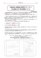(21)⊇.・うセt"く09-01大阪府流入規制適合車標章(ステッカー)交付遅延に伴う暫定措置について人阿任0ま、条例の規定に基づき平成21年1月1日から実施する流入車規制の一環として規制の対象となる自動liのうち、自動車NOx・PM法の排ガス基準に適合した自動車等に表示していだだく適合車等標卓(ステツカーlを自動車の所有者又は使用者からの請瀾こより交付しています。しかしながら、ステッカーの交付が遅れるケースカちり、荷主筆旅行業者に対し、適合車等の確認について、以下のとおりご配慮をお願いしておりま九つきましでま、このことについて貴団体の会員への周知に格別のご配慮をお願いしま九1.輸義慮をお願いしている期間平成21年3月末まで2.荷主等旅行業者に百配慮をお願いしている事項(1)適合車等標章交付請求書の写しを携帯している場合は、適合車等標章(ステッカ→を表示しているものとみなしてお取り扱いいただくこと。9)¨¨螂置渤競勒竣有する劇榊書を携帯している場合|よ適合車等願瓢ステッカーlを表示しているものとみなしてお取り扱いいただくこと。0)適合車等標章交付請求書の写し又は受付済確認書を携帯していない場合でも、自動|●検査証又はその写しで適合車等であることが確認できる場伸ま、適合車等標章(ステッカーlを表示しているものとみなしてお取り扱いいただくこと。輛については、大阪府の流入:●対策のホームベージでもお知らせしていま九utlyメ↓所綱詢響罫¨室 交通環境課自動車排ガス規制指導グループ電話06-6944-92510つ ご意06-6941-5778|せ1( |‐t `| 1石 商l i3 1青■|:tイ |・i直分|■千'■1‐iヽ||: ■it 2●li li t11 1■11: 通合|||1手II til=「l ilt=中,あらこ1を確i“tl_′=■.ヽ1:11][]柳■'|■|:環●晨`|ヽⅢIサftiメli父I■■,1メ飯鷹聯濃ホ~熾郵大阪府環境農体水茜帥うヽら、平成21年1月1日から施●される流メ陣規制に伴う「適合帥の交付事協こ遅延が発生しており、このための暫定措置について下記のとおり周知方依頼がありました。会員様におかれましては、標章の適合車両への貼付に代わる確認方法を了知頂きますようお願いしま九