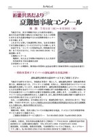 ()10-07 ―契約事業所ドライバーの運転適性を出張診断― 運転適性診断車の巡回サービスをご利用ください 当組合では昨年8月から、事故防止事業の一環として、運転適性診断車(運転操作検査器3台、動体視力計1台、プリンター1台搭載)を導入し、契約事業所でのドライバーの運転適性を診断しています。出張先事業所で、適性診断車搭載機器によりトラックの運転に大きな影響を及ぼすドライバーの特性や加齢に伴う身体機能の低下、視覚的な刺激に対する反応能力やハンドル操作の正確さを数値的に計測、診断します。この診断により、ドライバーは自己の運転特性を正しく認識でき、また、運行管理者は運転者個々の適性を日々の安全管理に役立てることができます。 なお、この適性診断は、安全運転に役立てる一般適性診断であり、国交省令に基づく「特定診断」ではありませんが、Gマーク取得にかかる安全性優良事業所認定の安全に対する積極性として認められ、配点の対象になります。 <お申し込み> 期 間 7月1日(木)~9月30日(木) 当組合では、暑さや睡眠不足による疲労が蓄積し、 前方不注意や居眠り運転などが起き易くなるこの時期に本年も安全意識を喚起するため夏期無事故コンクールを実施します。 これまでにも増して体調管理に努め、気を引き締めて安全運転を励行していただきますようお願いします。 お届けする「コンクール参加申込書」(契約組合員対象)を7月31日までに、FAX(06-6965-2838)でご返送願います。 ①地域コンクール 期間中、対人および対物の事故率がともに共済平 均事故率を下回る地域を表彰②事業所コンクール コンクール期間中、無事故の事業所に記念品を贈呈(参加事業所には記念品を進呈) 自動車、自賠責、労災共済は近畿共済でご契約を!!〒612-8418 京都市伏見区竹田向代町51-5(京都自動車会館内) TEL 075-671-1894 FAX075-671-4382運送保険、火災保険、賠償責任保険、生命保険等についてのご用命は、キンコウセーフティ㈱へ。℡ 06-6965-2561 FAX 06-6965-2830までご連絡下さい。 ご連絡は事故防止サービス課まで・・・ Tel 06-6965-2826 Fax06-6965-2838 開催日時、場所、受診人数についての実施計画をお電話、FAXにて安全対策部事故サービス課までご連絡下さい。