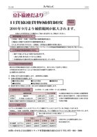 10-08(2) 月払い 年払い 小型車 大型車 小型車 大型 基本補償 (Aプラン)2,500円3,000円27,500円33,000円ワイド補償(Bプラン)3,000円3,600円33,000円39,000円補償限度額 自己負担額 小型車輸送中 1,000万円5万円 大型車(1事故・1台あたり) 1,500万円5万円 輸送に付随する保管中(1事故あたり)5,000万円5万円 日貨協連貨物補償制度 運送業者 貨物賠償 未加入の事業者はこの機会にご加入を是非ともご検討ください。 ◎保温・保冷・冷蔵・冷凍貨物の補償範囲を拡大 ◎輸送に付随する保管中の補償範囲を拡大 ◎1点10万円以下の宝石・美術品・骨董品も補償の対象に拡大 〈補償範囲拡大のポイント〉※変更点、補償内容の詳細につきましては、パンフレット(日貨協連貨物補償制度のご案内)をご覧ください。〈日貨協連貨物補償制度の特色〉○個々で加入するより掛け金がお得です。 (加入台数20台以上でさらに割引) ○各種特約が自動付帯され補償内容が充実しています。 (1)日貨協連貨物補償制度概要組合員の皆様が輸送を受託した貨物に損害が生じ、荷主に対して法律上/契約上 の外傷責任を負担することにより被る損害を補償する制度です。 (2)補償される損害は ① 貨物に対する損害を補償します。(修理費など補償) ② 各種の費用損害を補償します。 ③ 荷役作業中の事故による第三者に対する賠償責任を補償します。 ●損害防止費用 ●仕分け費用 ●継搬費用 ●検査費用 ●残存物取片付け費用 (3)補償限度額と自己負担額※高額品を輸送される車両には補償限度額の上乗せが可能です。(500万円単位の上乗せで補償限度額は最高5,000万円まで設定可能) (4)2つの補償プランAプラン(基本補償プラン)とBプラン(ワイド補償プラン)の2つのプランをご用意しております。 「易損品」、「冷蔵・冷凍貨物」を輸送される場合には、ワイド補償(Bプラン)へのご加入をおすすめいたします。(5)掛金(トラック1台あたり)加入台数20台以上で更に割引!! ※損害率による割増を適用しない基本の掛金です。 お問い合せなどは京都府トラック事業協同組合連合会まで TEL 075-661-5888 2010年9月より補償範囲が拡大されます。※小型車:5㌧未満 大型車:5㌧以上(積載量)