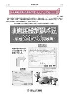 12-06(16)国土交通省 自動車検査証等各種証明書の判読性向上等の観点から、用紙の意匠(デザイン)の変更を行いました。 平成24年6月以降、各地方運輸局運輸支局等において随時新用紙への切り替えが行われます。なお、お手元の旧用紙による各種証明書等は、引き続き有効です。※京都運輸支局での新様式の検査証等は7月頃からの切り換えとなります。自動車検査証等出力用紙の意匠(デザイン)が変わりました 自動車検査証等出力用紙の意匠(デザイン)が変わりました
