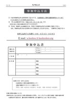 12-12(24)① 下記の参加申込書に必要事項をご記入のうえ、公益財団法人 関西交通経済研究センターあて FAX又はEメールでお申し込み下さい。 ② 申し込み締め切り日は、平成25年 1月 21日(月)です。 (定員に達した場合は締め切らせていただきます)③当日は、参加申し込み確認のため、受付にて参加申込書または名刺をご提出ください。 なお、参加申込者に代わる代理の方のご出席は差し支えありません。(名刺等をご用意下さい)お申し込みFAX番号:06-6543-6295E-mail : a.kankou @ kankouken.org参 加 申 込 書 御 社 名 (団体名)TEL( ) -FAX( ) - 参加申込方法御 社 名 ( 団 体 名 ) E-mail: ご 住 所 (〒 - ) お 名 前 所属 所属 所属 所属 所属 [お問い合せ・お申し込み先] 公益財団法人 関西交通経済研究センター 運輸安全マネジメント支援センター TEL:06-6543-6291 / FAX:06-6543-6295 ※[個人情報の取扱について] 参加申込書にご記入頂きました個人情報は厳正に管理し、本シンポジウムに関する確認・連絡の通知の際 に使用させて頂きます。他の目的での利用や第三者へ提供することは一切ございません。 に使用させて頂きます。他の目的での利用や第三者へ提供することは一切ございません。