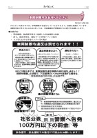 15-3(18)車両制限令違反は罰せられます!!総重量20t※2幅2.5mNEXCO西日本では、車両制限令違反車両の通行を許しません!!積荷を積載した状態で、下記基準のいづれかを超過する場合は、「特殊車両通行許可証」が必要です。高さ3.8m※1荷主の方へ運送事業者の方へ運転手の方へ積込前の急に荷物量を増やすなど、違法な運行につながるような依頼はしないで下さい。あなたの行動が、あなたの会社だけでなく、運送事業者と運転手を守ります。許可証を携帯し、経路、通行条件を自ら確認し、違法な通行とならないように走行してください。特殊車両通行許可や制限外許可など、必要な許可を取得した上で、違法な通行とならないか自ら確認し、適正に走行してください。あなたの遵法精神があなたの会社と社員、運転手を守ります。必要な許可は取得していますか?車両の積載重量が走行できる重量とは限りません「安全第一」で運転を長さ12m※2※1 高速自動車国道及び高さ指定道路は、高さ4.1m社名公表警察へ告発100万円以下の罰金等☞特殊車両通行許可申請は通行経路を管理する道路管理者へご提出ください軸重10t※2罰則隣接軸重18~20t輪荷重5t最少回転半径12m※2 車両諸元や通行経路に応じて特例値があります違反法令遵守・安全運転での通行にご協力をお願いします!100万円以下の罰金等NEXCO西日本NEXCO西日本では、車両制限令を遵守していただけるよう、活動を展開しています。道路利用の皆さまにおかれましては、車両制限令等関係法令の遵守をお願いします。◆活動内容・警察機関、他道路管理者と連携した車両制限令取締・荷主、運送事業者、運転手への啓発チラシの配布・SA等における啓発ポスター等の掲示車両制限令をお守りください車両制限令をお守りください