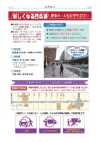 15-3(26)人の乗降5分以内の荷物の積卸し歩行者の妨げになる人の乗降・荷物の積卸し禁止~ 四条通の停車ルール(烏丸通~川端通間)~~ 四条通の停車ルール(烏丸通~川端通間)~整備後の四条通≪停車スペースの使い方≫ 人の乗降・5分以内の荷物の積卸しで利用可能です荷物の積卸しなどは,切り込みのある停車スペースをご利用ください。※停車スペースは工事の進捗に合わせて,順次ご利用できるようになります。整備後のイメージCG車線を4車線から2車線に平成27年秋完成予定!!● 歩道が広がり 歩きやすく なります。● バス停も広がり 快適 にお待ちいただけます。● 車線を4車線から 2車線に変更 します。ここが変わります!新しくなる四条通●四条通を誰もが快適に歩くことができるように歩道を拡幅し,公共交通が優先する道路にします。●四条通を「歩いて楽しいまち」とするためには,道路整備だけでなく,道路を使われる皆さまにもルールを守っていただくことが欠かせません。御理解と御協力をよろしくお願いします。四条通【烏丸通~川端通までの区間】平成27年10月末(予定)※日曜・祝日は除く※7月10日~24日は祇園祭のため, 工事を休止します午後9時~翌午前6時【工事区間】【工事期間】【工事時間】停車ルールをお守りください