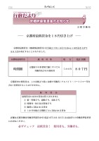 (15)15-10京都府最低賃金のお知らせ京都府最低賃金のお知らせ京 都 労 働 局京都府最低賃金を18円引き上げ京都府最低賃金 (地域別最低賃金)を平成27年10月7日から18円引き上げて807円に改正することになりました。京都府最低賃金適 用 対 象現 行改正金額時間額京都府下の事業場で働くすべての労働者及びその使用者789円807円京都府内の使用者は、この金額より低い金額で労働者 (アルバイト・パートイマー等を含む)を使用することはできません。除外賃金最低賃金には次の賃金は算入されません①精・皆勤手当、通勤手当、家族手当②時間外・休日及び深夜手当③臨時に支払われる賃金④1か月を超える期間ごとに支払われる賃金詳細は京都労働局労働基準部賃金室(電話 075-241-3215)又は最寄りの労働基準監督署にお尋ねください。 必ずチェック最低賃金! 使用者も、労働者も。