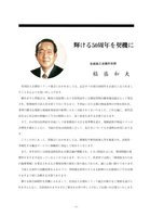輝ける50周年を契機に京都商工会議所会頭稲盛和夫社団法人京都府トラック協会におかれましては、記念すべき創立50周年をお迎えになられましたことを心よりお祝い中し上げますじ顧みますと貴協会は、戦後の混乱期における昭和22年に京都府貨物自動車運送協会として発足され、昭和30年の法人化を経て今日に至るまで、半世紀に亘り京都の物流業界の中核を担われ、業界の健全な発展と地域産業経済の振興に大きく貢献されてまいりました。これも偏に、歴代役員をはじめ会員の皆様のご尽力の賜物と存じ、深く敬意を表する次第であります。さて、わが国は21世紀を日前にして産業構造の大きな変革期を迎え、規制緩和や物流コストの合理化が進むとともに、当面の景気は回復感に乏しく、先行きについても不透明な状況にあります。こうした中にあって、貴協会におかれましては、情報化や新技術導入等を推進され、高度化・多様化する輸送サービスに積極的に対応して頂きたく存じます。また、本年12月には地球温暖化防止京都会議が開催され、C02削減をはじめ、環境問題の重要性がますます高まっているところであります。幸いにして、貴業界では既に「環境保全のための施策要綱Jを策定されるなど環境対策の強化に取り組んでおられ、誠に心強い限りであります。今後とも50年の活動成果を遮、まえつつ、貨物運送業界のさらなる振興のため格別のご尽力を賜りますよう切に念願する次第であります。輝ける創立50周年を契機とされまして、社団法人京都府トラック協会が新たなご発展を遂げられますとともに、会員各位のますますのご繁栄をお祈り申し上げましてお祝いの言葉といたします。