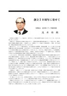 創立50周年に寄せて社団法人 全日本トラック協会会長浅井時Йβ社団法人京都府トラック協会が、本年をもって創立50周年を迎えられましたことを、心からお祝い申し上げます。貴協会は、昭和22年の終戦の混乱の中で、京都府貨物自動車運送協会として発足され、爾来、幾多の困難な課題を克服し、同39年には、京都府トラック協会に名称変更し、現在、傘下16支部・所属会員812社を数えるに至っております。顧みますと、 トラック運送事業は、わが国経済の復興期、高度成長期、そして2度に亘る石油危機を経た後の安定成長期、平成不況そして今次の長期に及ぶバブル不況という環境の中で、常にその時代の期待に応える役割を果たして参りました。今日では、物流の主役として市場規模も12兆円という国内有数の産業に成長し、多様化・高度化する物流ニーズに適切に応え、国民生活の安定とわが国産業経済の発展に重要な役割を果たしております。しかしながら、業界を取巻く経営環境は、規制緩和の推進や産業の空洞化の進展の強まる中で景気の動向は低迷の一途を辿っており、輸送需要の伸びは期待できず、一方荷主企業のコストの削減要求により、運賃水準はますます厳しさを増すことが予浪1され、さらにNOx等のIFm境対策、高速道路料金の改定、軽油価格の値上げ、本年4月からの週40時間労働制への移行などのコストアップ要因によって、極めて厳しい状況下にあります。このような中、事業経営の基本であります交通安全の確保、環境問題への対応さらに事業の近代化対策、急速に発展する情報化対応など緊急に取り組まねばならない多くの課題が山積しており、これら諸問題に対応するためには、企業の枠を越えた業界あげての取り組みが必要であり、このような時ほどトラック協会の存在がますます重要となって参ります。京都府は、占都のイメージに加え産業・経済のみならず近畿・北陸の物流の拠点として、内陸部地域全体が、均衡のとれた発展を遂げております。貴協会が地域社会にしっかりと根をおろし地域社会の活性化、地域住民の生活向上に役立つトラック協会としてますます活動を充実されることをご期待申し上げますc全卜協といたしましても、21世紀を見据え、社会との共生に努めながらあらゆる変化に即応できる活力と行動力をもって、 トラック運送業界の発展に努力して参る所存であります。貴協会におかれましても、この歴史ある50年をひとつの節目として、諸課題の解決に向かって更なるご努力を賜りますことをお願い中しあげますとともに、貴協会のますますのご発展と事業の限りないご繁栄を祈念いたしましてお祝いの言葉とします。